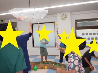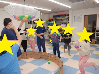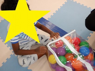 好きな色を選んだり距離を調節して投げる練習をしたりしました。