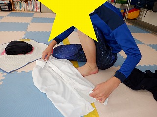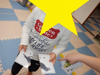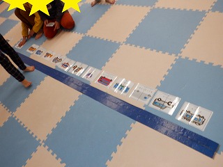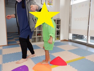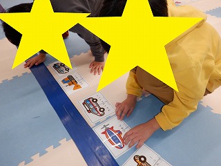 周囲のお友達との距離感にも注意しながら取り組みました。