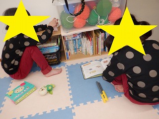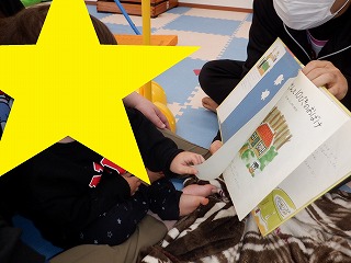 自由遊びの時間では、歌絵本や立ちあがってダンスをしたり、かわいいオバケの絵本を何度も繰り返し読んで楽しみました♪