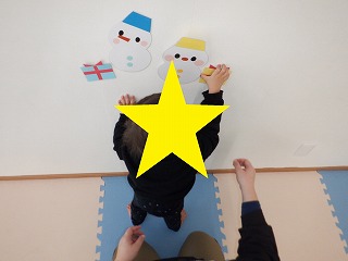 12月14日(木)【児発】つかまり立ちで雪だるまにタッチ他【放デイ】カエルのフープ渡り他