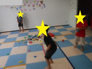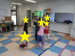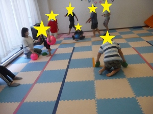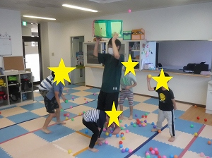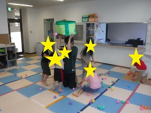 最後は玉入れです!お友だちとぶつからないように動くことが大切ですね。