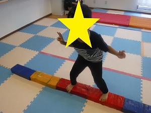 ☆カニさんで一本橋渡り(バランス感覚、脚力)