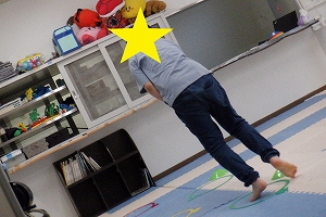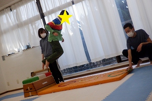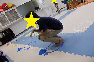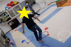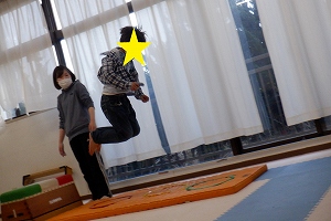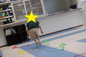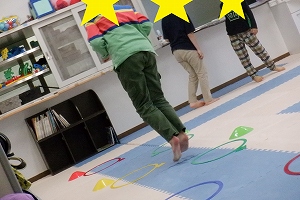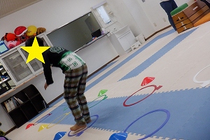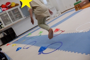 ☆フープを目がけてジャンプ(跳躍力・空間認知力)